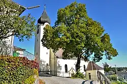 Eine Kirche wurde 1136 urkundlich genannt. Die gotische Kirche wurde um 1660/1665 barockisiert.