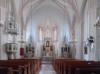 Am 17. November 1867 weihte der Seckauer Fürstbischof Johann Baptist Zwerger die Kirche. Die Feier begann mit einem Frühgottesdienst in der alten Pfarrkirche, vor dem Einzug in die neue Pfarrkirche und der Weihe. Der Gottesdienst in den nachfolgenden Tagen wurde zunächst noch weiter in der alten Pfarrkirche gehalten. Erst am ersten Adventssonntag 1867 wurde das Allerheiligste in die neue Pfarrkirche übertragen. In den folgenden Jahren wurde die Ausstattung der Kirche erweitert, so wurden 1868 die beiden Seitenaltäre und 1869 die Orgel aufgestellt.[9][10]