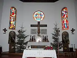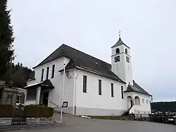 Die Pfarrkirche wurde anstelle einer Holzkirche auf Initiative von Pfarrer Johann Weißengruber nach Plänen von Richard Puchner in den Jahren 1934 bis 1936 erbaut und am 12. Oktober 1936 von Bischof Johannes Maria Gföllner geweiht. Bei der Kirche handelt es sich um ein dreischiffiges Langhaus mit offenem Dachstuhl. Ein von Johann Weißengruber geschnitztes Kreuz bildet das Zentrum des Altarraumes. Im linken Seitenschiff befindet sich die Lourdesgrotte, im rechten der Herz-Jesu-Altar.