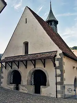 Der spätgotische Bau des Beinhauses wurde 1509 geweiht und ist mit einer markanten Holzdecke, Wandmalereien und einen gotischen Flügelaltar ausgestattet. Es beherbergt ungezählte Gebeine und Totenschädel, die nach Friedhofsräumarbeiten dorthin umgebettet wurden.