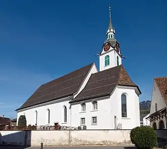 Auf den Fundamenten einer 1125 geweihten romanischen Kirche wurde zu Beginn des 14. Jahrhunderts ein neues gotisches Gotteshaus errichtet und 1318 geweiht. Schiff und Chor waren neu, den übernommen romanischen Turm stockte man 1540 unter Jakob Anderrüti auf und versah ihn mit einem Spitzhelm. Zugleich wurde der Chor umgestaltet und erweitert. Der Innenraum wurde zwischen 1660 und 1670 barockisiert, 1740 erhielt der Turm einen neuen Kuppelspitzhelm nach Vorbild der Kirche in Schwyz. 1842/43 erfolgte eine umfassende Renovierung, 1893 eine Teilrenovierung der Innenräume. 1963/65 und 2002/03 restaurierte man diese erneut und führte auch archäologische Grabungen durch. Dabei wurden unter dem Chor die romanischen und gotischen Fundamente freigelegt und zugänglich gemacht.