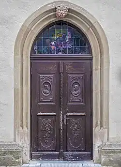 Die Kirche besitzt je ein einfaches Portal an der nördlichen Langhausseite und der westlichen Giebelseite; an der südlichen Langhausseite zum Marktplatz befindet sich ein großes Portal mit einem Holzvordach. Die Fenstermaßwerke wurden größtenteils im 19. Jahrhundert erneuert.
