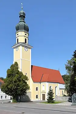 Eine Kirche wurde 1084 urkundlich genannt. Die ursprünglich gotische Kirche wurde 1781 mit Ignaz Prechtler umgebaut.