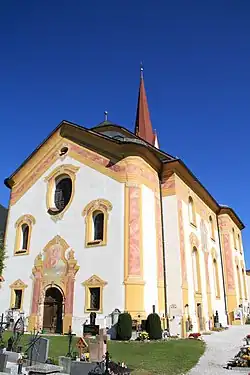 Die heutige Pfarrkirche zum hl. Pankratius wurde 1754 bis 1756 vom Tiroler Kirchenbaumeister und Priester Franz de Paula Penz erbaut. Das prächtige Bauwerk beeindruckt außen durch den hohen Turm, der noch von 1626 stammt, sowie durch den hellen, freundlichen Innenraum, ein typisches Merkmal aller Werke des Baumeisters.