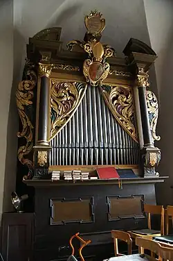 Das Orgelgehäuse aus 1792 zeigt das Wappen des St. Lambrechter Abtes Franz von Kaltenhausen, die Orgel stand ursprünglich in der dortigen Peterskirche. Das Orgelwerk entstand 1910.