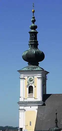 Der Kirchturm wurde um 1500 völlig neu erbaut. Von 1777 bis 1786 wurde der Zwickelturmhelm abgebrochen und ein Zwiebelturm errichtet. Der Kirchturm ist 56 Meter hoch.