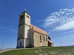 1330 wurde urkundlich eine Kapelle genannt. Im 16. Jahrhundert erfolgte die Errichtung der Kirche. Das Gebäude, das auf dem Kirchhügel von Wartberg steht, ist ein gotischer Saalbau mit Chor und vorgestelltem barocken Westturm.[2]