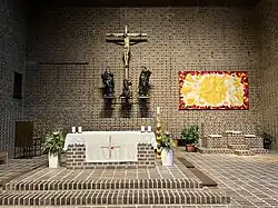Die barocke Kreuzigungsgruppe, die sich im Altarraum befindet wurde 1969 erworben, das Kruzifix stammt aus Stubenberg in der Steiermark, die übrigen Figuren aus Wiener Neustadt. Das Hochaltarbild der ehemaligen Vorstadtpfarre wurde 1739 von Bartolomeo Altomonte geschaffen und hängt in der Seitennische.