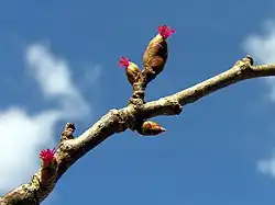 Der phänologische Winter umfasst die Zeit der oberirdischen Vegetationsruhe, in der die meisten Bäume ihr Laub verloren haben. Davon ausgenommen sind nur frühjahrsabwerfende Bäume, wie manche Eichen oder Buchen, und vereinzelte wintergrüne Laubgehölze. Schwarzer Holunder, Eiche und Lärche verlieren jetzt das noch verbliebene Laub. Es blühen Christrose, Winterjasmin und Zaubernuss. Mit der Blüte der Haselnuss schließt sich der Kreis und der Vorfrühling beginnt.[34]