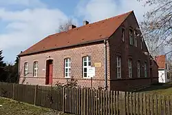 - Dorfschule, Hauptstraße 12. Die Dorfschule am westlichen Ortsausgang, ein eingeschossiger roter Sichtziegelbau wurde 1856/7 errichtet.