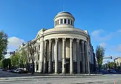 Das Gebäude der Philharmonie an der Ecke der E.-Ožeškienės- und der L.-Sapiegos-Straße wurde von 1925 bis August 1928 nach Plänen des Architekten Edmundas Frykas errichtet. Der Stil des viergeschossigen Gebäudes ist ein mit Art-déco-Elementen bereicherter Neoklassizismus.[1]