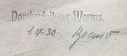 Ab 1911 war er „Domwerkmeister“ und leitete die Baustelle insgesamt. Angestellt war er beim Hessischen Hochbauamt. Neben der Dombaustelle führte er auch die Aufsicht bei anderen Staatsbauten in der Stadt Worms.[11] Karl Hofmann blieb aber weiterhin Dombaumeister.