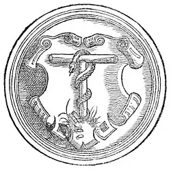Melanchthons Wappen, in einem 1556 gedruckten Kommentar zum Römerbrief