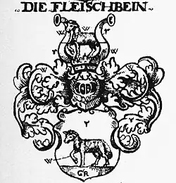 1665 heiratete er Anna Catharina Weisel. Die gemeinsame Tochter Maria Sibylla Fleischbein heiratete 18-jährig am 8. Juni 1693 in Frankfurt den verwitweten Johann Wolfgang Textor den Älteren. Bereits im nächsten Jahr wurde die Scheidung der Ehe Textor-Fleischbein eingeleitet und im September 1695 durchgeführt.[2] Im selben Jahr verklagten auch 15 Frankfurter Geschäftsleute Textor beim Reichskammergericht wegen offener Rechnungen von großzügigen Einkäufen, die seine zweite Ehefrau, die Fleischbein-Tochter, getätigt, er als der dazu verpflichtete Ehemann aber nicht bezahlt hatte.[7]