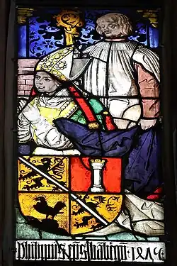 Das Wappen des Fürstbischofs ist geviert. Ein Feld enthält das Stammwappen der Familie, eine Henne auf einem Dreiberg. Weitere Felder zeigen den schwarzen Löwen für Bamberg, belegt mit einer silbernen Schrägleiste auf goldenem Grund.