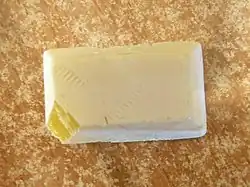 Weißer Phosphor ist die flüchtigste und reaktivste Modifikation des Phosphors. Er hat eine Dichte von 1,82 g/cm3, einen Schmelzpunkt von 44,25 °C und einen Siedepunkt von 280 °C und ist durchscheinend und wachsartig. Verunreinigt wird der weiße Phosphor auch als gelber Phosphor bezeichnet.[61] Der kubische weiße Phosphor ist in Phosphortrichlorid und Kohlenstoffdisulfid CS2 sehr leicht löslich; 100 g Kohlenstoffdisulfid lösen mehr als 1 kg Phosphor. In Tetrachlorkohlenstoff, Benzol oder Ether ist Phosphor schwach löslich. In Wasser ist er praktisch unlöslich.