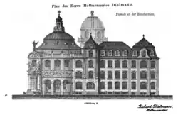 1897 erwog der Vorstand erneut einen Standortwechsel. Die Pläne von Franz von Hoven und Richard Dielmann, nach denen das neue Gebäude auf dem Eckgrundstück zwischen Bleichstraße und Brönnerstraße entstehen sollte, wurden jedoch nicht realisiert. Zuvor hatte Franz von Hoven bereits Pläne zur Erweiterung des bestehenden Gebäudes in der Stiftstraße vorgelegt, womit der vorhandene Raum verdoppelt worden wäre. Die Pläne wurden verworfen als bekannt wurde, dass durch die Stiftstraße eine Straßenbahn geführt werden sollte, die die physikalischen Geräte gestört hätte.[38] 1899 kamen die Dr. Senckenbergische Stiftung und der Verein überein, außerhalb der Innenstadt neue Gebäude zu errichten. Als neuer Standort wurde die Viktoria-Allee (heute Senckenberganlage) gewählt.[39] Nach dem 1906 abgeschlossenen Vertrag erhielt der Verein eine Abfindung von der Dr. Senckenbergischen Stiftung für das bestehende Gebäude in der Stiftsstraße. Das Gelände für den Neubau wurde dem Verein abermals in Erbpacht überlassen.