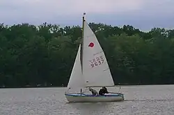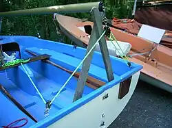 - Eine Querducht (Sitzbank), die dem Vorschoter nicht nur einen für Jollen ungewöhnlich bequemen Sitz bietet, sondern auch als Querversteifung des Rumpfes und Schwertkastenstütze dient.