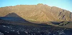 Chã das Caldeiras am frühen Morgen, links der Schatten des Pico
