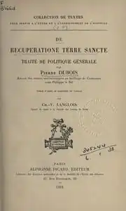 - Ernst Zeck: Der Publizist Pierre Dubois. Seine Bedeutung im Rahmen der Politik Philipps IV. des Schönen und seine literarische Denk- und Arbeitsweise im Traktat „De recuperatione Terre Sancte“. Weidmann, Berlin 1911.