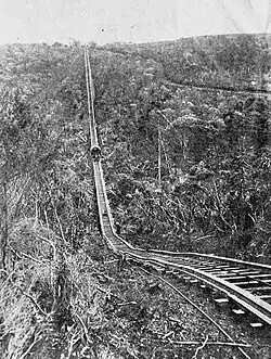 Die Standseilbahn war im Dezember 1910 bereits eine Meile (1,6 km) lang und angeblich die steilste Strecke, die es zu dieser Zeit auf der Welt gab. Auf diesem Teil der Strecke musste ein Seil von der Seilwinde an der Rückseite des Wagens gehängt werden, bevor er die Steilstrecke hinunterfuhr. Dies reduzierte die Abwärtsgeschwindigkeit.[3]