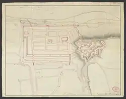 Ende des 19. Jahrhunderts wuchs die Stadt in Richtung Süden. Im Bereich der heutigen Südvorstadt entstand ab 1887/1889 ein ausgedehntes Kasernenareal entlang der Rottwerndorfer Straße. Die „Graue Kaserne“ diente als Unterkunft für das 2. Feldartillerie-Regiment Nr. 28[20] (später ersetzt durch das 1. Pionierbataillon Nr. 12). Zwischen 1901 und 1906 wurde das Kasernenareal nach Süden um die Bauten der „Roten Kaserne“ für das 5. Feldartillerie-Regiment Nr. 64 erweitert. Die Kasernen boten Unterkünfte für etwa 1700 Mann. Als Exerzierplätze nutzte das Militär ein Gelände an der Stadtgrenze nach Heidenau und eines an der heutigen Copitzer Brückenauffahrt der Sachsenbrücke beim Flugplatz.
