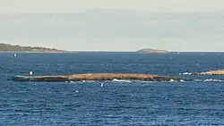 Die unbewohnte Insel erstreckt sich von Westen nach Osten über etwa 110 Meter und von Norden nach Süden über ungefähr 95 Meter. Sie erhebt sich nur wenig über die Wasseroberfläche und ist weitgehend kahl. An ihrem Nordende befindet sich ein Seezeichen.