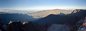 Die entleerten Magmenkammern an den Flanken des Vulkans sind eingebrochen und bilden heute drei Calderen:
