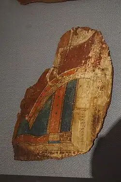 Die Malereien sind auf einer weißen Stuckschicht auf Zypressenholz in Temperafarbe unter Verwendung von mineralischen Pigmenten angebracht. Die Umrisse wurden in schwarzer und roter Farbe ausgeführt. Das Farbspektrum reicht von weiß, rot, blau, gelb, violett, braun, grün bis schwarz. Die Farben wurden nur deckend aufgetragen, es gibt weder Abstufungen noch Farbverläufe.