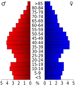 Auf das gesamte County bezogen setzte sich die Bevölkerung zusammen aus 23,0 Prozent Einwohnern unter 18 Jahren, 7,2 Prozent zwischen 18 und 24 Jahren, 28,8 Prozent zwischen 25 und 44 Jahren, 26,6 Prozent zwischen 45 und 64 Jahren und 14,3 Prozent waren 65 Jahre alt oder darüber. Das Durchschnittsalter betrug 40 Jahre. Auf 100 weibliche Personen kamen 95,4 männliche Personen. Auf 100 Frauen im Alter von 18 Jahren oder darüber kamen statistisch 92,9 Männer.