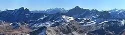 Blick vom Crap Farreras, in der Mitte Piz Mez, links davon der Piz Cagniel.