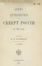 - ↑ russisch Путешествие по северу России в 1791 году, wiss. Transliteration Putešestvie po severu Rossii v 1791 godu ; vgl. Putešestvie po Severu Rossii v 1791 godu / P. I. Čeliščev