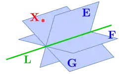 ist die gemeinsame Ebene , die den Punkt und die Gerade enthält ('Join').