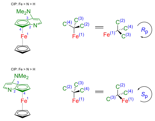 - ↑ a b Karl-Heinz Hellwich: Planare Chiralität. In: Stereochemie — Grundbegriffe. Springer Berlin Heidelberg, Berlin/Heidelberg 2002, ISBN 3-540-42347-8, S. 61–62, doi:10.1007/978-3-662-10051-6_38.