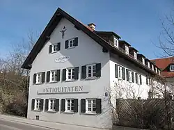 Der zweigeschossige Satteldachbau mit Giebelkruzifix, jetzt Wohn- und Geschäftshaus, wurde stark verändert. Im Jahr 1993 wurde das Gebäude umgenutzt und in eine neu erbaute Wohnanlage integriert.