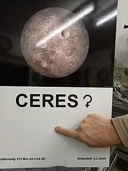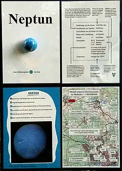 Lauf an der Pegnitz: ab der Kunigundenschule in der Hardtstraße nach Dehnberg und Neunhof; Radrundweg über 18 km[23], von Schülerinnen gestaltet, mit Asteroiden und ausführlichen Tafeln (s. Abb.), Maßstab 1:1 Mrd. 49° 30′ 59,4″ N, 11° 16′ 21,7″ O49.516511.2727