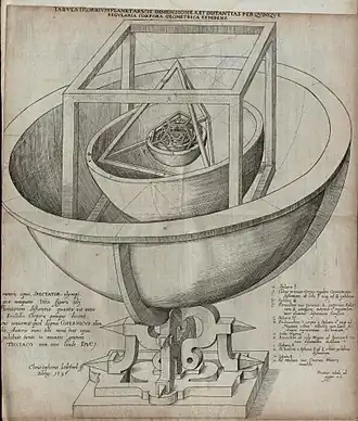 - ↑ Christophorus Leibfried: Tabula III. Orbium Planetarum Dimensiones et Distantias Per Quinque Regularia Corpora Geometrica Exhibens