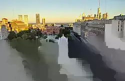 An der nordöstlichen Ecke der Plaza de Mayo steht das 1888[1] fertig erbaute Gebäude der Banco de la Nación. Sehenswert ist das Innere der achteckigen Kuppel. Das Gebäude ist der Hauptsitz der größten staatlichen Bank Argentiniens und beinhaltet immer noch die aus mehr als 10.000 Tresoren bestehende Schatztruhe der Nationalbank. An der Rückseite des Bankgebäudes schließt sich in nördlicher Richtung das Bankenviertel der Stadt an.