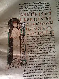 Das Buch besteht aus 270 Papierblättern, ist reichlich koloriert und mit goldenen Großbuchstaben geschrieben. Es enthält die lateinische Vulgata von Hieronymus.