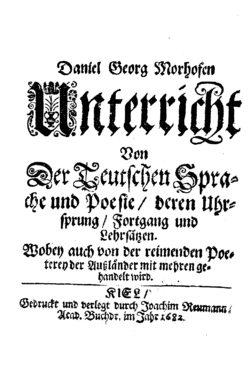 - Daniel Georg Morhof: Unterricht von der deutschen Sprache und Poesie. Kiel 1682.