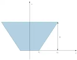 Die Parameter eines Kegelsegments seien gegeben durch (siehe nebenstehende Abbildung):