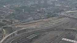 Die Überbauung besteht aus einem grossen geschlossenen Baukörper, der 280 Meter lang, 130 Meter tief und mit sechs Geschosse bis zu 35 Meter hoch ist. Darin befinden sich vier begrünte Innenhöfe.[7][6] Das Gebäude ist nicht öffentlich zugänglich.[2]