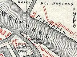Am 17. März 1814 wurde der Polnische Haken in das Danziger Stadtgebiet eingegliedert. An Stelle der Schanze entstand 1842 am Ende des Strohdeichs (Sienna Grobla) eine Parkanlage mit markierten Wegen und Bänken. Keier und Devrient gründeten am 1856 eine Werft, seit 1865 die Devrient-Werft, die 1871–1872 die ersten deutschen Torpedoboote herstellte. Ein weiterer Teil des Geländes wurde 1865 von J. W. Klawitter gekauft. Der Erweiterung um eine moderne Gießerei (1886–1887) und eine Fabrik für Schiffsmaschinen sowie eine Kesselschmiede (1899–1901) fiel die Parkanlage zum Opfer. Devrient wurde 1914, Klawitter 1931 geschlossen.