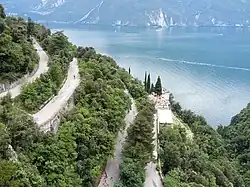 Nach ca. 3 km der Strecke zweigt eine knapp 2 km lange Straße in Richtung Pregasina (400 m s.l.m.) ab, die erst 1956 fertiggestellt wurde. Diese führt in südlicher Richtung erst über den Ponale und anschließend in mehreren Serpentinen zu der zu Riva del Garda gehörenden Fraktion und war bis zur Fertigstellung des Straßentunnels 1998, der Pregasina mit dem Val di Ledro verband, die einzige Straßenverbindung des Ortes.[1]