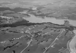 Avry-devant-Pont von der Autobahnraststätte La Gruyère aus gesehen