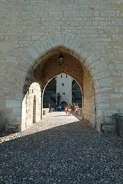 Die Brücke sollte das Entstehen einer zweiten Hauptstraße in der Stadt begünstigen, die sich nun in West-Ost-Richtung erstreckte, statt wie zuvor entlang der Nord-Süd-Hauptachse. Dies hatte erhebliche Auswirkungen auf die gesamte bauliche Entwicklung der Stadt. 1355 konnten Pilger und Kaufleute die Brücke über den an dieser Stelle 138 Meter breiten Lot erstmals passieren.[1] Der Bau wurde frühestens 1378 vollendet. Noch 1389 wurde berichtet, dass eine Glocke in einem der Brückentürme eingebaut wurde.