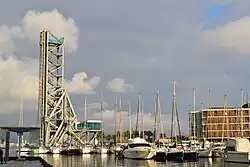 Die Brücke wurde 1913 beim Unternehmen Daydé in Auftrag gegeben; die Inbetriebnahme erfolgte 1920. Von da an musste die Eisenbahn nicht mehr durch die Innenstadt zu den Schiffswerften fahren.[1] 1986 wurde die Brücke in der Senkrechtstellung arretiert. Die Restaurierung begann im Jahr 2007 und endete am 26. Juni 2009. Seitdem kann die Aussichtsplattform in 42 m Höhe mithilfe eines Aufzugs erreicht werden. Im ersten Stock der Brücke befindet sich eine Ausstellung über die Funktionsweise der Brücke.
