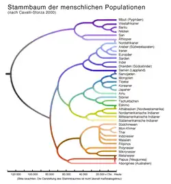- ↑ Jun Z. Li u. a.: Worldwide Human Relationships Inferred from Genome-Wide Patterns of Variation. In: Science. Band 319, 2008, S. 1100–1104, doi:10.1126/science.115371.