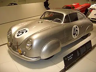 Der Porsche 356 ist das erste Serienmodell von Porsche. Die Typbezeichnung 356 für den Sportwagen ist die laufende Nummer dieser Porsche-Konstruktion; die Zählung der Porsche-Entwicklungen begann jedoch mit der Nr. 7, vermutlich, um bei Auftraggebern ein größeres Vertrauen in das junge Unternehmen zu erzeugen.[1] Der Motor hat die Konstruktionsnummer 369. Als „Geburtstag“ des Porsche 356 gilt der 7. Juli 1948, an dem der erste Testbericht über ein Porsche-Coupé erschien. Im April 1965 endete die Produktion der Baureihe 356; 76.302 Wagen wurden gebaut.