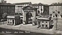 Die beiden Bögen des Neuen Stadttors repräsentieren eines der drei noch erhaltenen romanischen Stadttore im Verlauf der mittelalterlichen Stadtmauern von Mailand. Mit ihrem doppelten Rundbogen markiert diese ältere Porta Nuova das Ende der heutigen Via Alessandro Manzoni zur Piazza Cavour hin. Das Tor wurde 1176 erbaut[1] und zwischen 1330 und 1339 auf der stadtauswärtigen Seite umgestaltet mit Streifeninkrustationen und einem Relief der Madonna mit Heiligen. An die Innenseite hat man Grabsteine aus der Römerzeit versetzt, deren Herkunft nicht mehr bekannt ist. Die seitlichen Durchlässe für Fußgänger stammen aus dem 19. Jahrhundert.